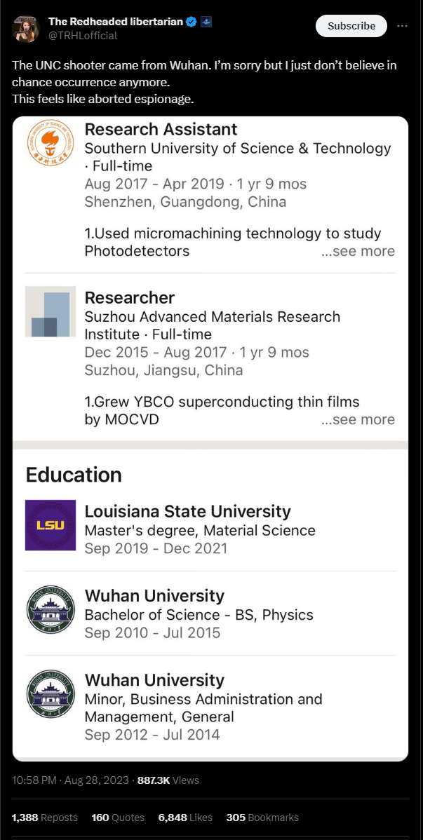 I suppose that the simple explanation—that sometimes graduate students don't get along with their supervising professors (Oppenheimer, anyone?)—is less sexy than the speculation that Chinese Communist Party spies are executing expats in the United States.